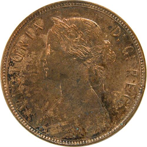 Newfoundland Large Cent 1890 Red and Brown Uncirculated. A very well struck piece with the expected weakness on the crown on the reverse. It is strongly lustrous and about 60% red