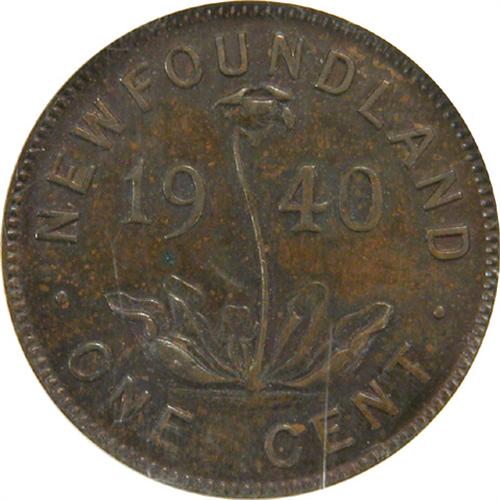 Newfoundland Small Cent 1940 PCGS MS-64 Brown. Well struck with great lustre and traces of red