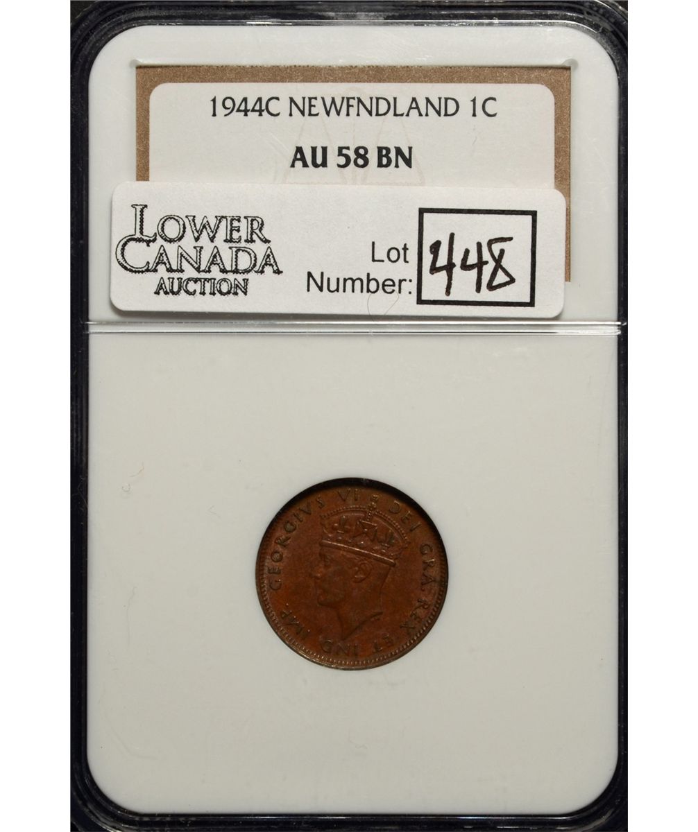 Newfoundland Cent 1944C NGC AU-58 Brown.