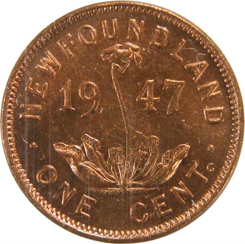 Newfoundland Small Cent 1947C ICCS MS-62 Red. Fully struck with great lustre and over 95% red