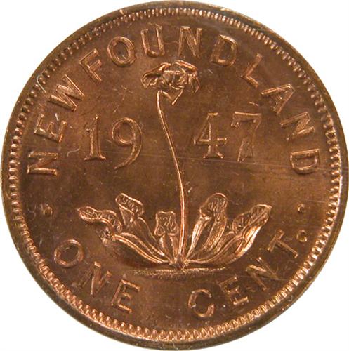 Newfoundland Small Cent 1947C ICCS MS-62 Red. Fully struck with great lustre and over 95% red