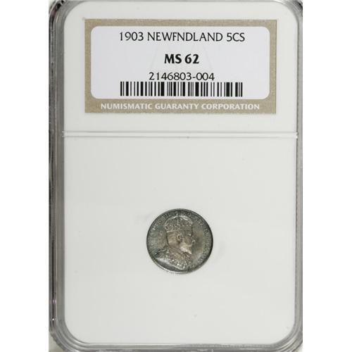 Newfoundland. Edward VII 5 Cents 1903, KM7, MS62 NGC, d