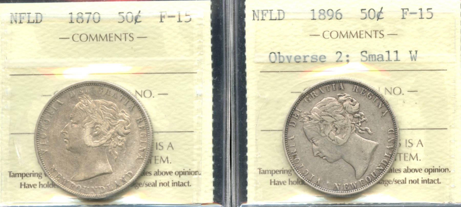 Includes: 1870 & 1896 Obv. 2; small W. Both F-15. 2 Pcs.