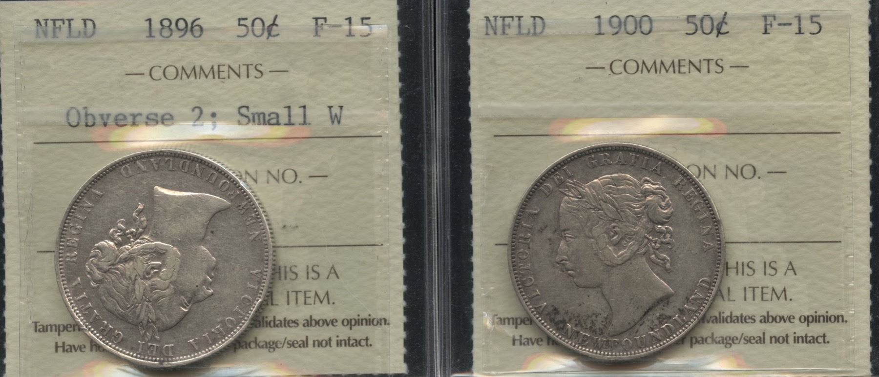 Includes: 1896 Obv. 2; small W & 1900. Both F-15. 2 Pcs.