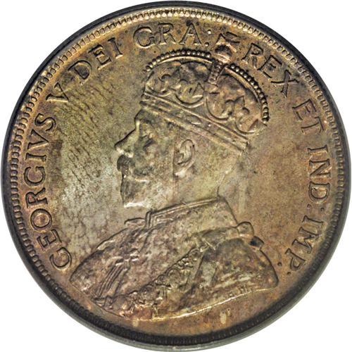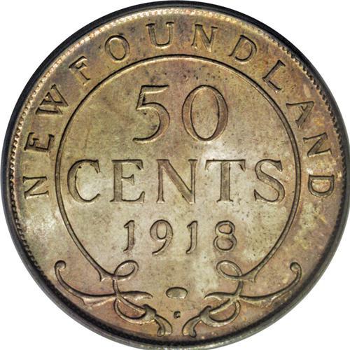 <B>Newfoundland George V 50 Cents 1918C,</B></I> KM12, MS63 PCGS. Mottled toning with underlying luster and a nice strike.