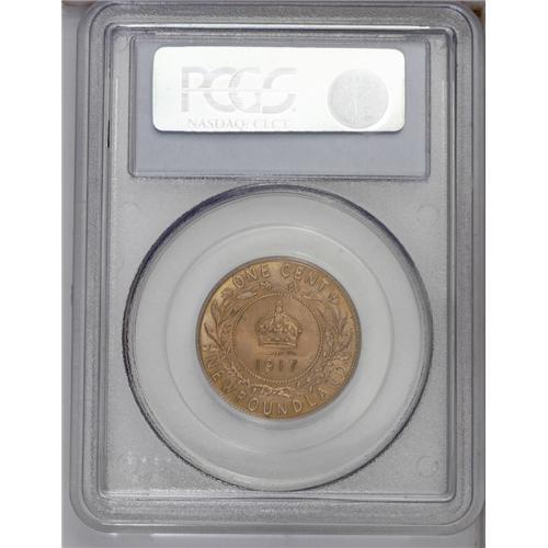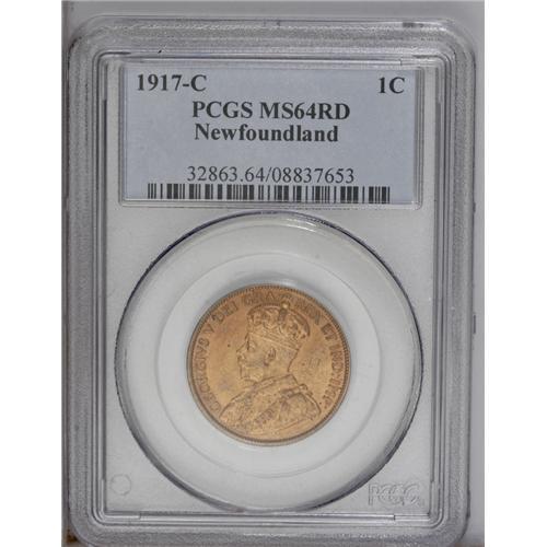 <B>Newfoundland George V Cent 1917C,</B></I> KM16, MS64 Red PCGS. Nice orange patina with a full strike.