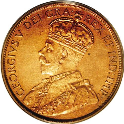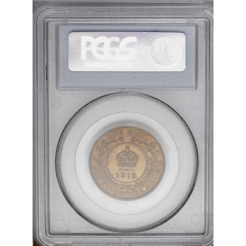 <B>Newfoundland George V Cent 1919C, </B></I> KM16, Specimen 63 Red Brown PCGS, a matte or flat finish to this tough Maritime issue.