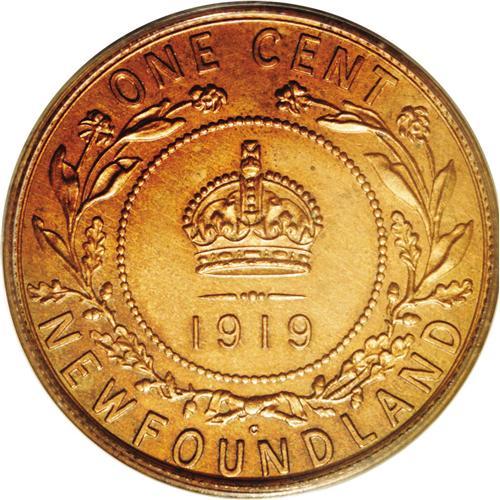 Newfoundland George V Cent 1919C, KM16 Specimen 63 Red Newfoundland George V Cent 1919C,