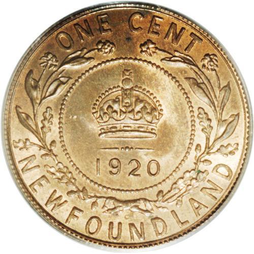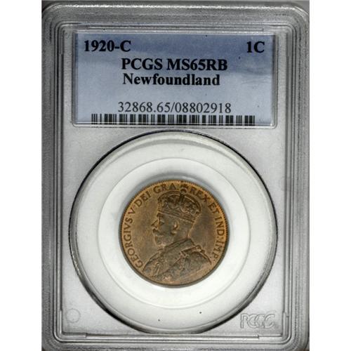<B>Newfoundland George V Cent 1920C</B></I> KM16, MS65RB PCGS, a sharply struck with some remaining luster with superb fields.