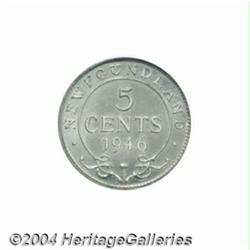 Newfoundland. George VI SPECIMEN 5 cent 1946C, KM19a, SPECIMEN 65 PCGS. Incredibly frosty devices with deeply mirrored fields and a spectacular cameo appearance. Krause lists a variety in Prooflike (Is this their terminology for a SPECIMEN? What else could it be?). To the best of our knowledge, there has never been a published sale of a certified SPECIMEN example of this issue. Important notice: Heritage usually auctions material at the rate of 200-250 lots per hour. On some occasions eBay Live bid software or the Internet may not be able to keep up with the pace of the auction. We recommend placing a realistic absentee bid now as insurance to avoid disappointment. Occasionally the auctioneer may eliminate or reject an eBay Live bid, and the auctioneer may also reopen a lot after the close of the eBay live bidding (usually because we missed an audience bid), and may reject your bid even if it shows you as the winning bidder. By bidding via eBay Live, you agree that Heritage may award the lot to another bidder at its sole discretion under the circumstances described above or any other reasonable circumstances. Also please note that all Heritage lots purchased through eBay Live carry a 20% Buyer's Premium. Please make sure you read the Terms and Conditions before you bid.