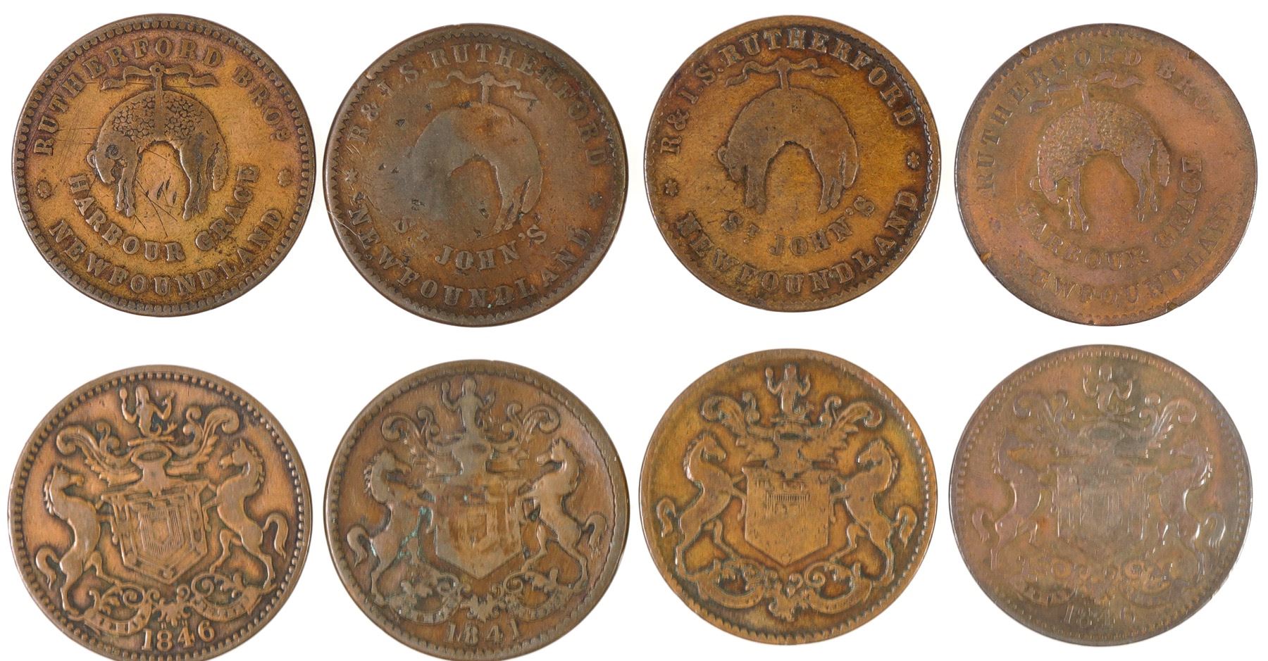 Lot of four Newfoundland pennies. 1841 (Breton 952; Charlton 190); 1846 (Breton 953;Charlton 191); undated (Breton 952; Charlton 190a); 1946. City: State: Date: