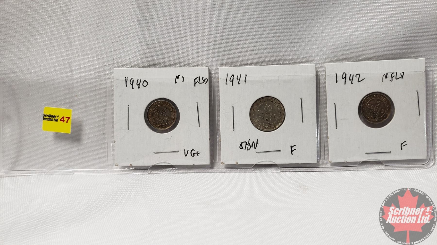 Newfoundland - Strip of 3: 1940 Five Cent; 1941 Ten Cent; 1942 Five Cent