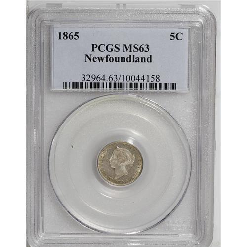 Newfoundland Victoria 5 Cents 1865, KM2, MS63 PCGS. Ros