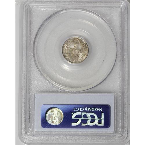 <B>Newfoundland Victoria 5 Cents 1865,</B></I> KM2, MS63 PCGS. Rose-gold toning with a prooflike obverse and a frosty, satin reverse. An exceptional example for the grade.