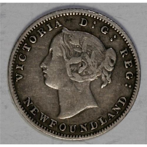 <B>Newfoundland Victoria 5 Cents 1885, </B></I>KM2, F-VF with attractive original toning, few tiny scratches.