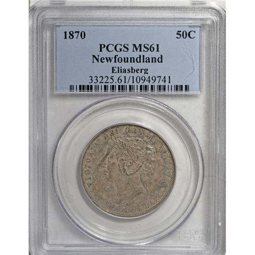 <B>Newfoundland. Victoria 50 Cents 1870, </B></I>KM6, MS61 PCGS Eliasberg, a highly attractive coin with rich original toning, definitely a premium coin for this designation. Rare and desirable in this quality.<BR><I>From the Louis E. Eliasberg, Sr. Collection</B></I><BR><BR><b>Shipping:</b> Coin/Currency (<a target="_blank" href="http://www.heritageauctions.com/common/shipping.php">view shipping information</a>)