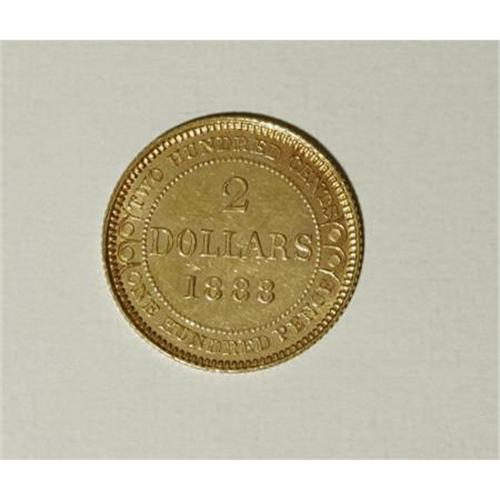 <B>Newfoundland Victoria gold 2 Dollars 1888,</B></I> KM5, sharply struck AU, very nice details, lustrous and close to mint state.<BR><BR><b>Shipping:</b> Coin/Currency (<a target="_blank" href="http://www.heritageauctions.com/common/shipping.php">view shipping information</a>)