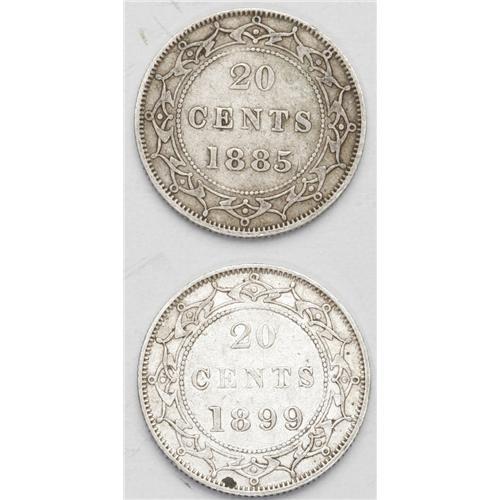<B>Newfoundland 20 Cent pair as follows: </B></I>KM4 1885, VF with a large obverse lamination and an 1899, XF.