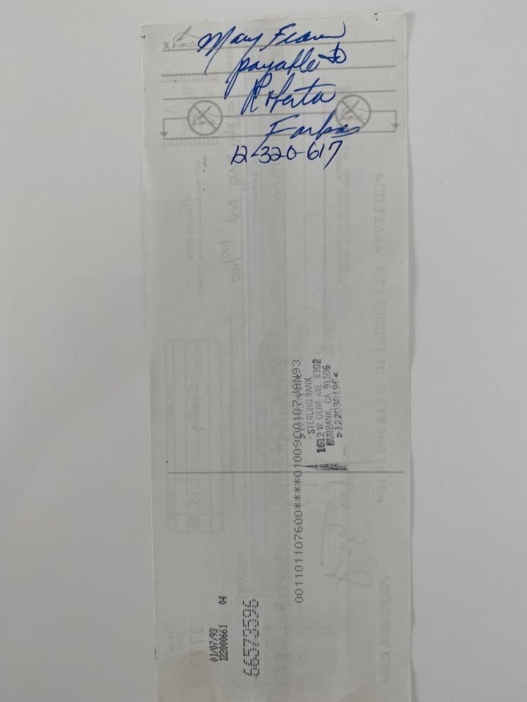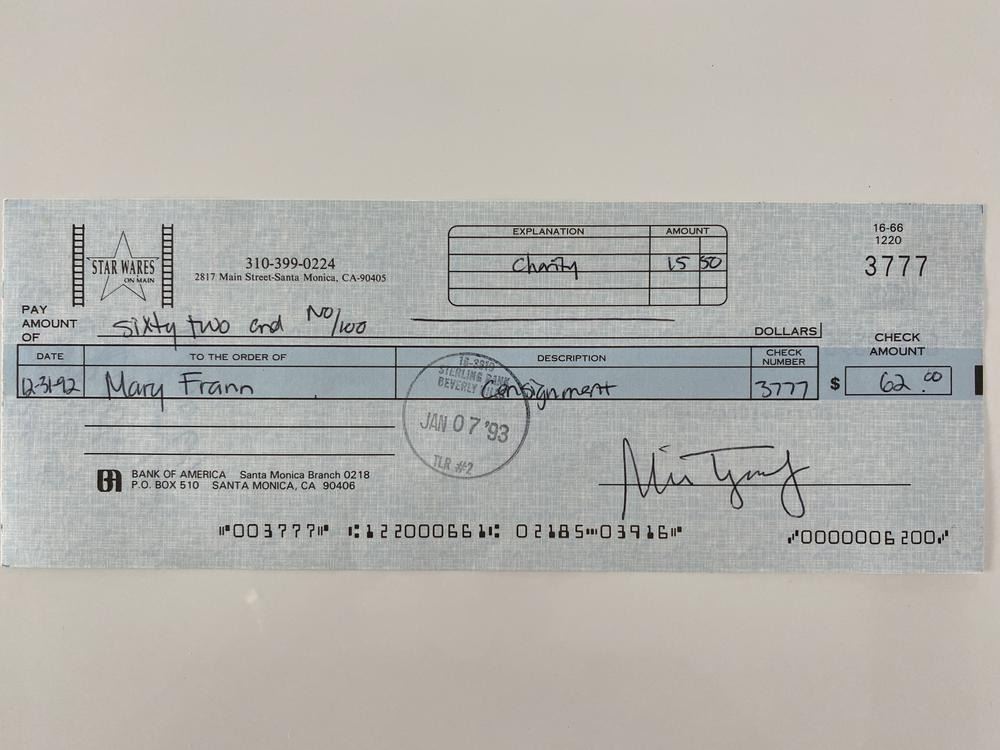 Mary Frann signed clothing consigment check dated June 7, 1993