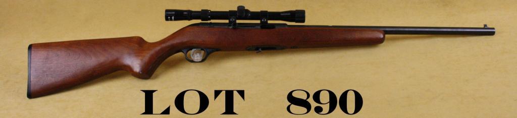 Newhaven my Mossberg. .22 caliber semi-automatic rifle, very good used condition mounted with Tasco variable scope. Rear sight removed. Good to very good condition. No magazine. Serial #NSNV Est: $25-50