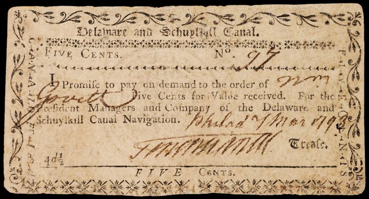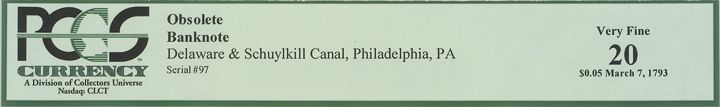 Newly Discovered Five Cent Denomination PCGS VF-20 March 7, 1793 “Delaware and Schuylkill Canal Navigation”