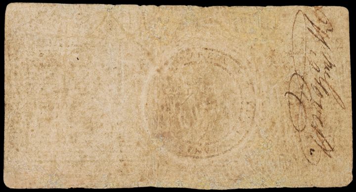 This Five Cents denomination was not listed for this issue, and was previously unknown to Eric Newman until the current 5th Edition of his reference “The Early Paper Money of America” was published. This issue of uniface notes is extremely rare, regardless of denomination. An exceptional note, having perfect centering within four full even margins. It is at least of premium quality for the PMG grade, if not too conservatively graded, as it has the eye appeal of Extremely Fine. The heavy watermarked “PENSYL” paper is quite clean, solid with the print quality being clear and strong. Serial number 97, made to a “Wm. (William) Gonett”, at “Philad(elphia), March 1793” and signed by “Tench Francis, Treas.” in rich, dark brown ink, with the endorsement of “Wm. Gonett” signed on the otherwise blank reverse. The center of the note has the standard circular embossed Seal of the Delaware and Schuylkill Canal Navigation company. A wonderful “discovery” note of extraordinary rarity that has just been listed in Newman.