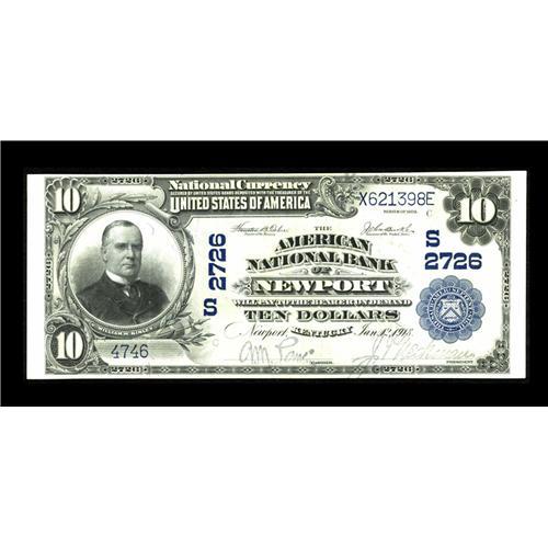 <B>Newport, KY</B></I> - $10 1902 Plain Back Fr. 632 <B>The American NB</B></I> Ch. # (S)2726<BR>Large size $10's and $20's were issued with the second title. The title was changed from The German NB during the throes of the First World War. This piece still bears the stamped signatures of the Cashier and President. Though the note is a touch flat, the <B>Extremely Fine</B></I> grade appears conservative as this note has the eye appeal of an AU.<BR><BR><b>Shipping:</b> Coin/Currency (<a target="_blank" href="http://www.heritageauctions.com/common/shipping.php">view shipping information</a>)