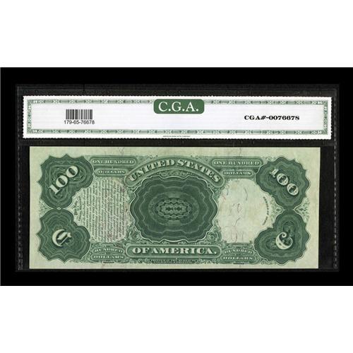 48B. CURRENCY – Notes sold referencing a third-party grading service are sold "as is" without any express or implied warranty, except for a guarantee by Auctioneer that they are genuine. Grading, condition or other attributes of any lot may have a material effect on its value, and the opinion of others, including independent grading services such as PCGS Currency, PMG, and CGA may differ with that of Auctioneer. Auctioneer shall not be bound by any prior or subsequent opinion, determination, or certification by any independent grading service. The grades assigned by any grading service to any note offered in any Heritage Currency Auctions of America sale represent the opinion of that grading service only,and may differ in material respects from the grade assigned to the same note in previous sales by HCAA or other auction companies, or from the grade that would be assigned by any other grading service. HCAA is unable to view any third party graded item outside of the holder, and specifically disclaims any liability of any kind to bidders who bid on third party graded items for mistakes of commission or omission by any grading service. Bidders are hereby notified that currency grading standards have changed in the past and are subject to change in the future, and that the only remedy bidder has with respect to third party graded notes is to deal directly with the grading service certifying the item. Bidders are also advised that Auctioneer makes no representation or guarantee that any item obtained by Bidder will be assigned any particular grade by any particular grading service, and as noted herein, Bidder specifically waives any claim to right of return of any item because of the opinion, determination, or certification, or lack thereof, by any independent grading service. Certain warranties may be available from the grading services and the Bidder is referred to them for further details: Paper Money Guaranty (PMG), PO Box 4711, Sarasota FL 34230; PCGS Currency, PO Box 9458, Newport Beach, CA 92658; Currency Grading & Authentication (CGA), PO Box 418, Three Bridges, NJ 08887.