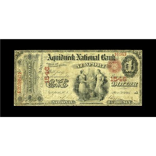 <B>Newport, RI</B></I> - $1 Original Fr. 380 <B>The Aquidneck NB</B></I> Ch. # 1546<BR>The usual New England cut is found on this ace that has its signatures present. Some edge wear is noticed along with an approximate quarter inch tear. Still an eye appealing <B>Very Good</B></I> note.<BR><BR><b>Shipping:</b> Coin/Currency (<a target="_blank" href="http://www.heritageauctions.com/common/shipping.php">view shipping information</a>)