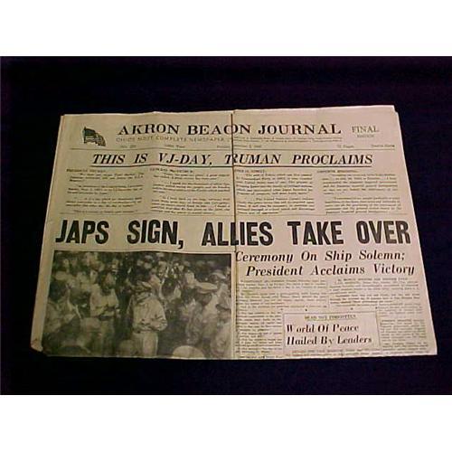 Newspaper-VJ Day, 1945 Akron Beacon Journal #1391085