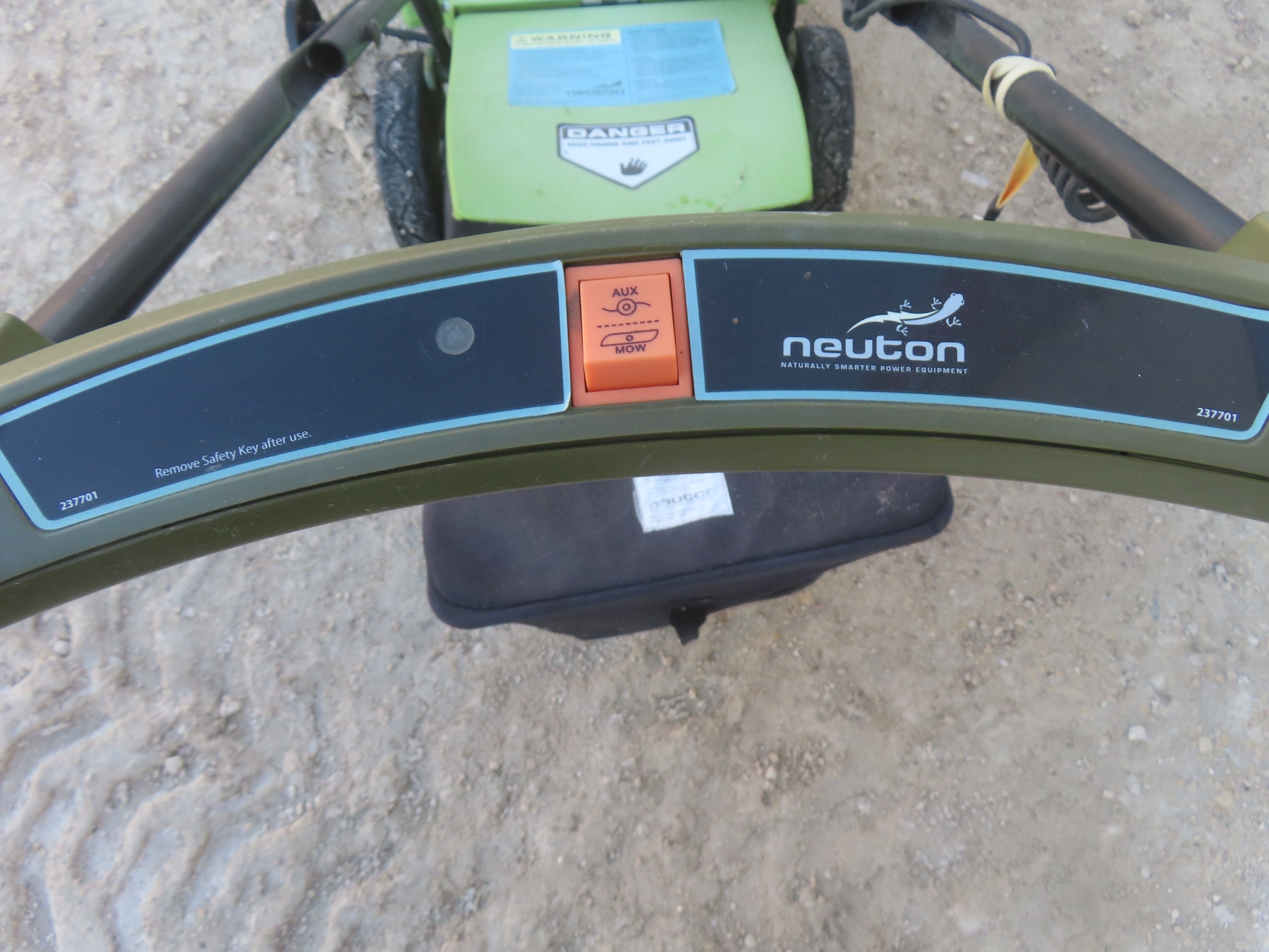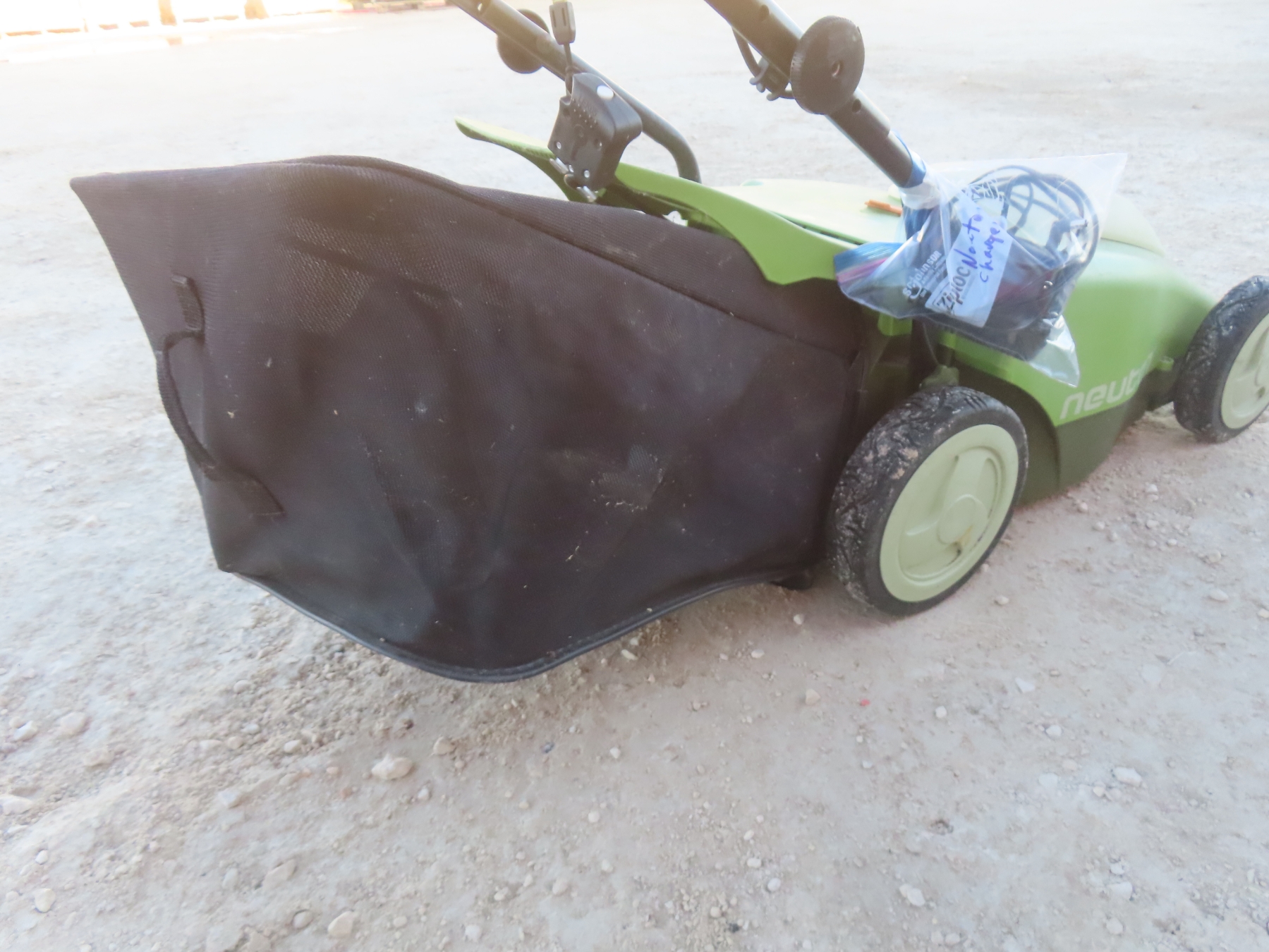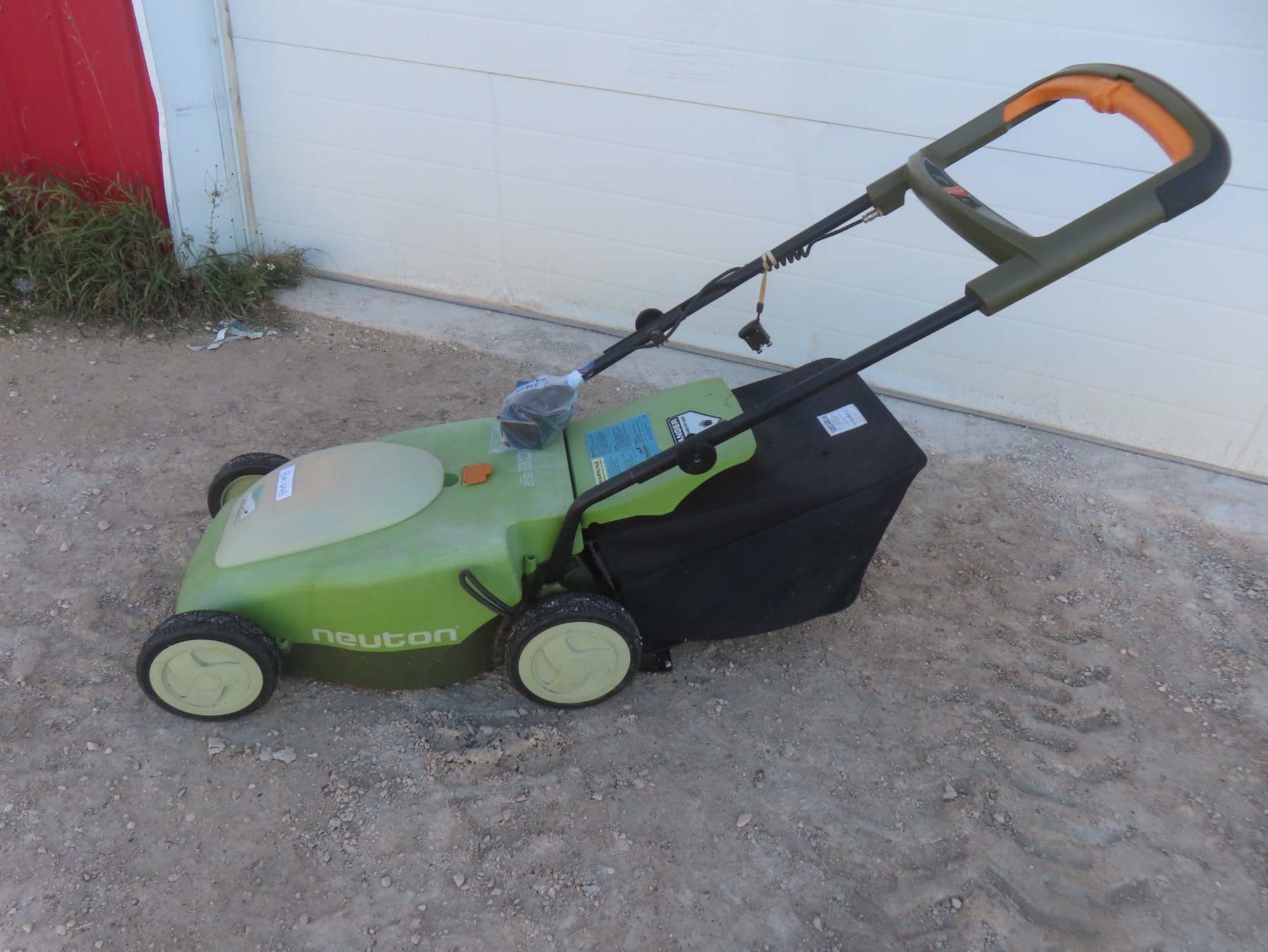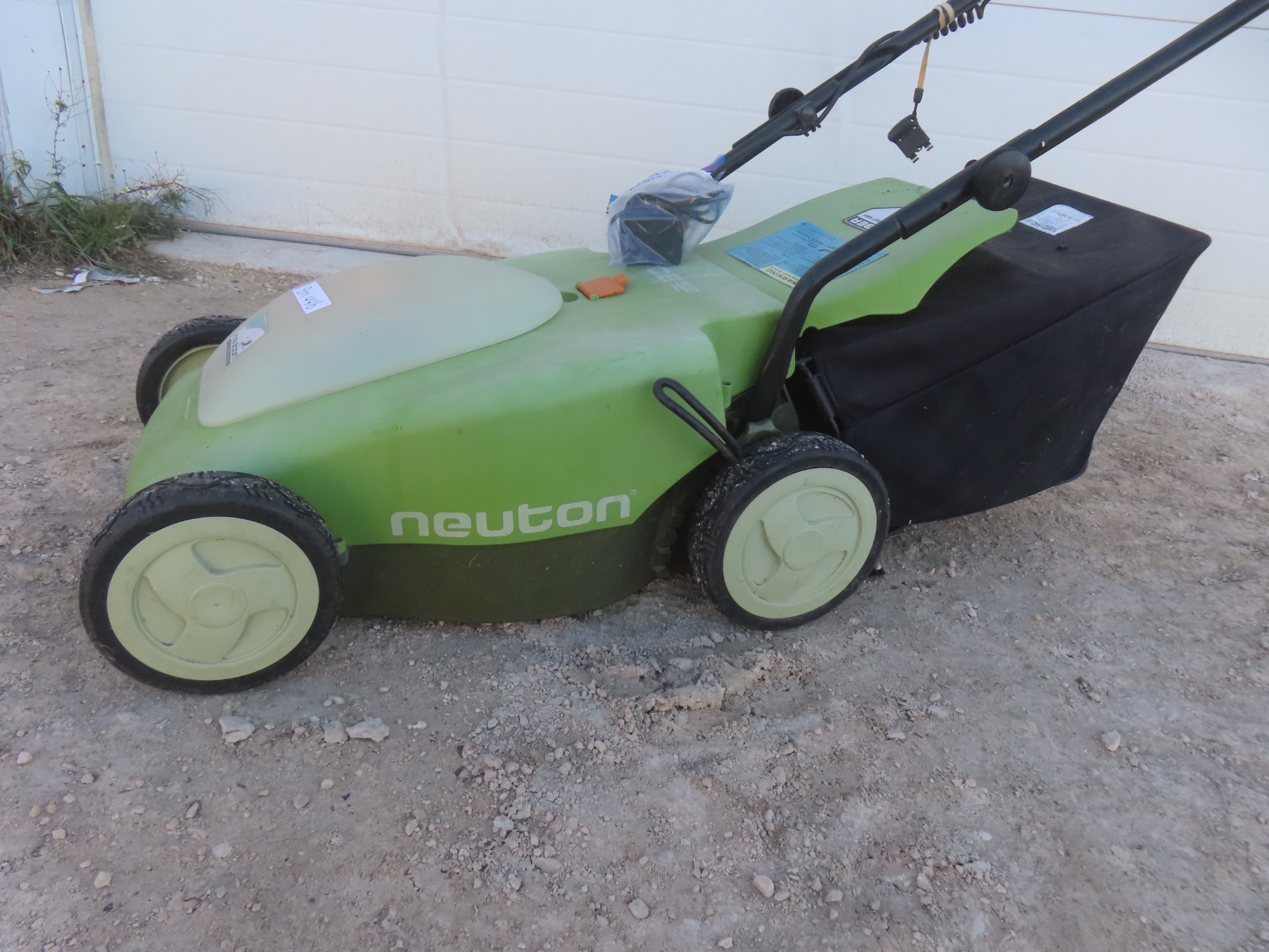 Newton Cordless Lawnmower with Charger and Bagger - Condition Unknown