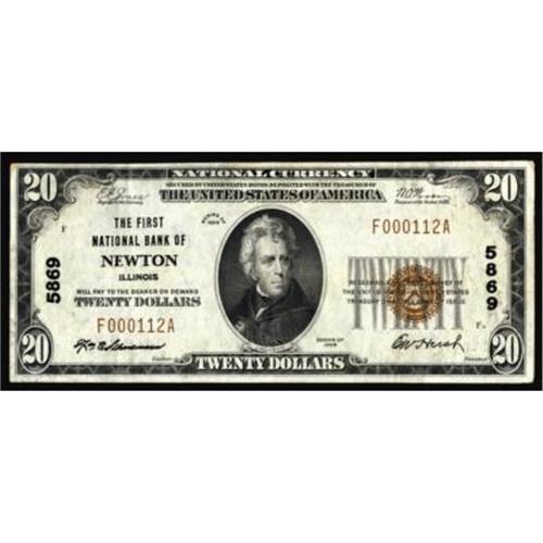 Newton, IL. $20 1929 Ty. 1. The FNB. Charter #5869. Very Fine.