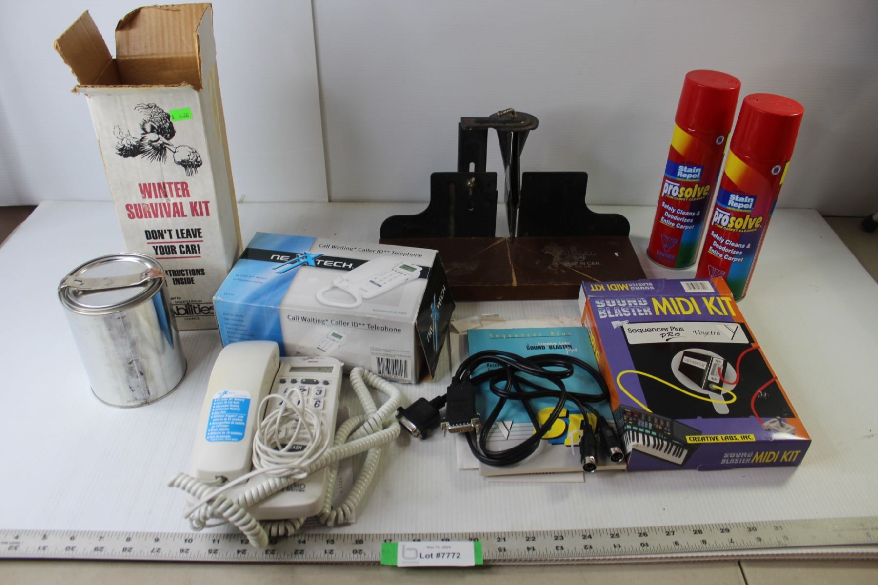 Nexxtech Telephone, Creative Labs Sound Blaster MIDI Kit, Stanley Saw Guide, Winter Survival Candle,