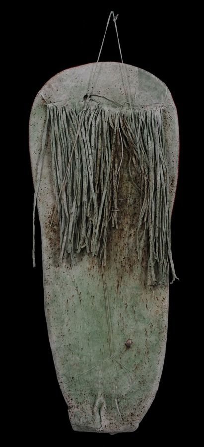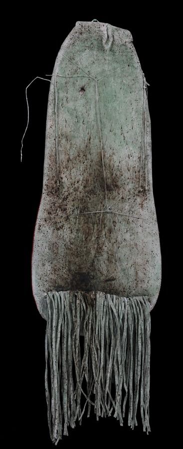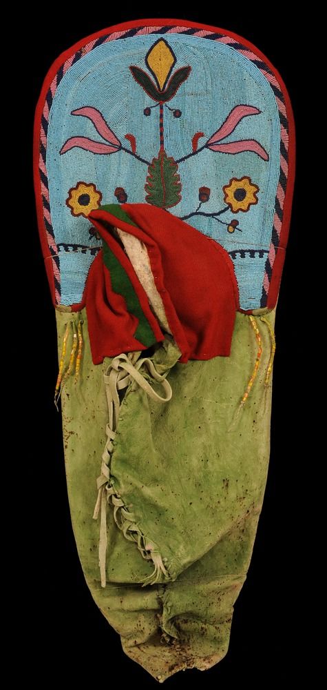 Nez Perce Beaded Cradle Board with Floral Design on Tanned Hide and Trade Cloth 36" L. 15" W. Good Condition