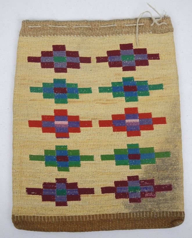 Nez Perce Corn husk flat bag - Hand made corn husk bag with wool inlays, fron WA. Nez Perce know for being from Fort Walla Walla. This is a rare piece and measures 14.5" x 18"