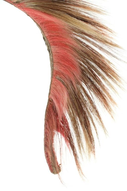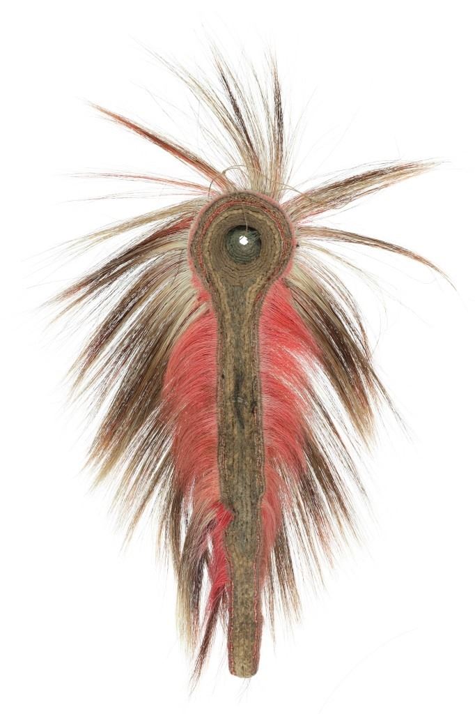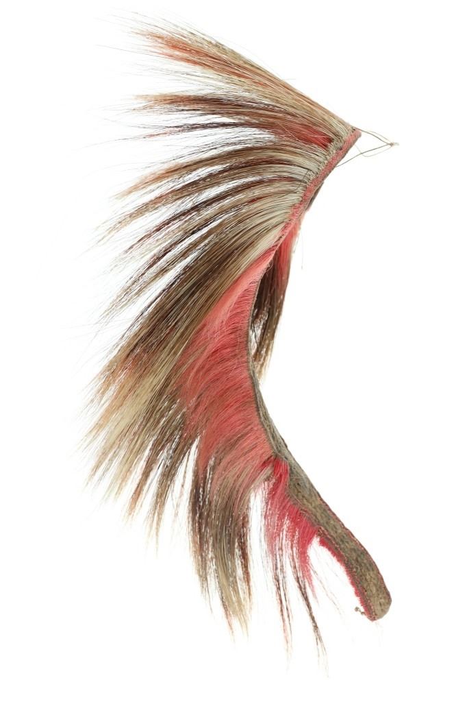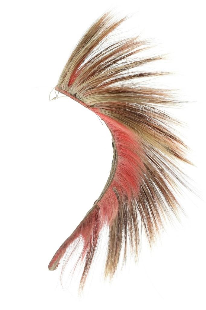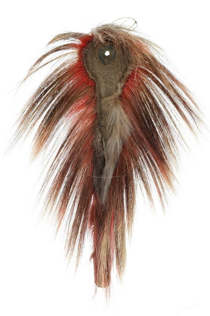 This is an original late-19th century hair roach from the Nez Perce Slickpoo family in Lapwai, Idaho. The piece exhibits porcupine hair and woven deer fur on a cotton base with rare early original mineral color of red ochre / ocher. The Slickpoo family are an important historic family of the Nez Perce in Idaho including Paul Slickpoo (Xa-Xaats-Tuustu, also known as Grizzly Bear Above, an image from 1895 of him is in the photo library), Author Allen P. Slickpoo author of Noon Nee-Me-Poo, Sam Slickpoo (image in photo library for example), and Josiah Slickpoo who the town of Slickpoo, Idaho is named after and helped Jesuit Priest Joseph Cataldo expand his mission across Southern Idaho. Provenance: From the Slickpoo family of Lapwai, Idaho; from a prominent Native American collection in Paris, France. Measure overall 16.5-inches long by 10-inches wide.