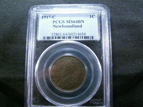 Nfld. 1¢ 1917c PCGS MS64BN. Lustrous brown with clean surfaces. Hint of red.