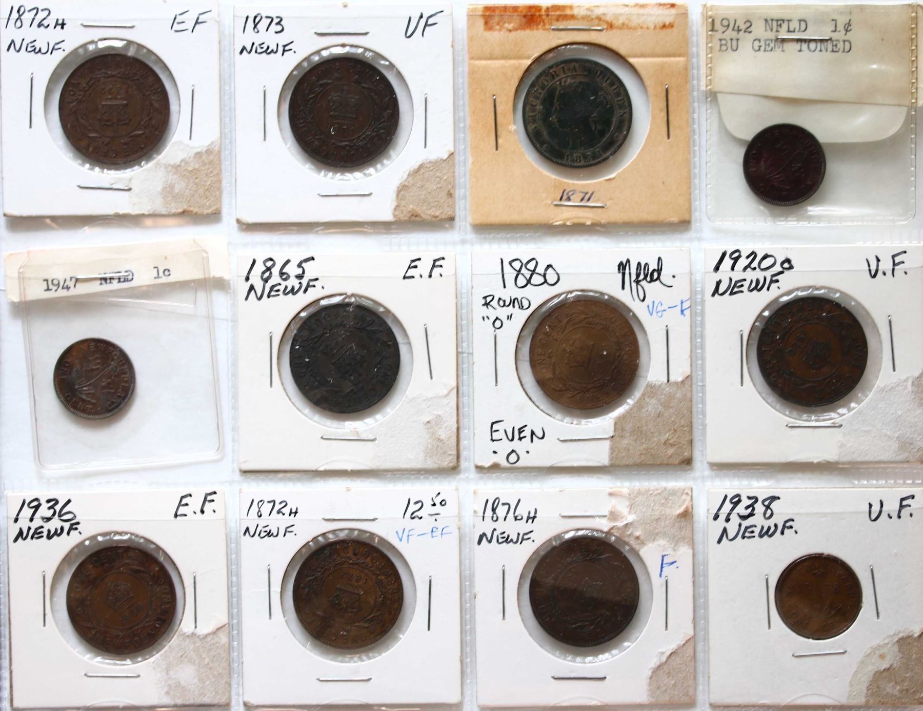 Nfld; 1865-1938 1¢ & PEI 1871 1¢, Good to AU with traces of red. Lot of 14 pieces.