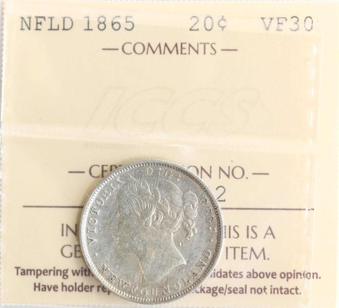 Nfld; 1865 20¢ ICCS Choice Very Fine-30