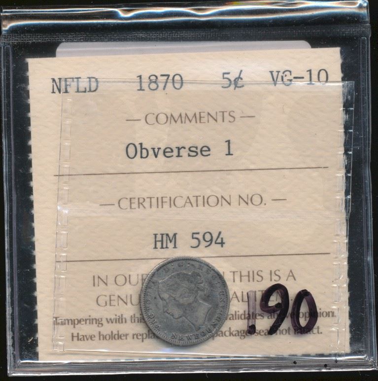 Nfld 1870 10¢ Obv 1 ICCS VG10.