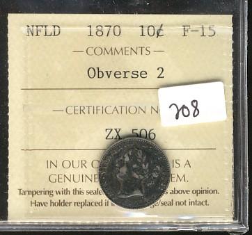 Nfld 1870 10¢ Obv 2 ICCS F15.