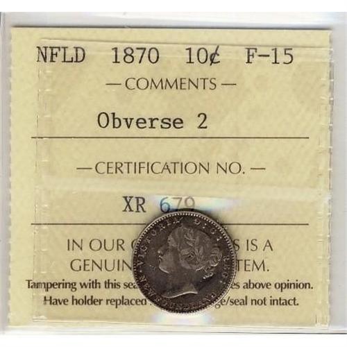 Nfld 1870 10¢ Obv 2 ICCS F15.