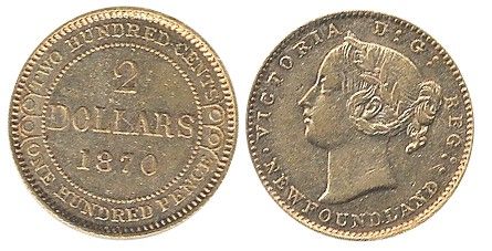 Nfld 1870 $2 Gold Obv 1 ICCS AU50.