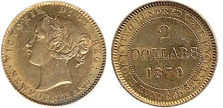 Nfld 1870 3 dots $2 Gold Obv 1 ICCS MS62. Attractive issue with strong lustre. Very rare in mintstate condition and underrated in Trends. We sold an MS63 for more than 50K.