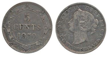 Nfld 1870 5¢ Obv 1 ICCS VF20.
