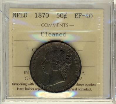 Nfld 1870 50¢ ICCS EF40. Designated as cleaned. Should be viewed.