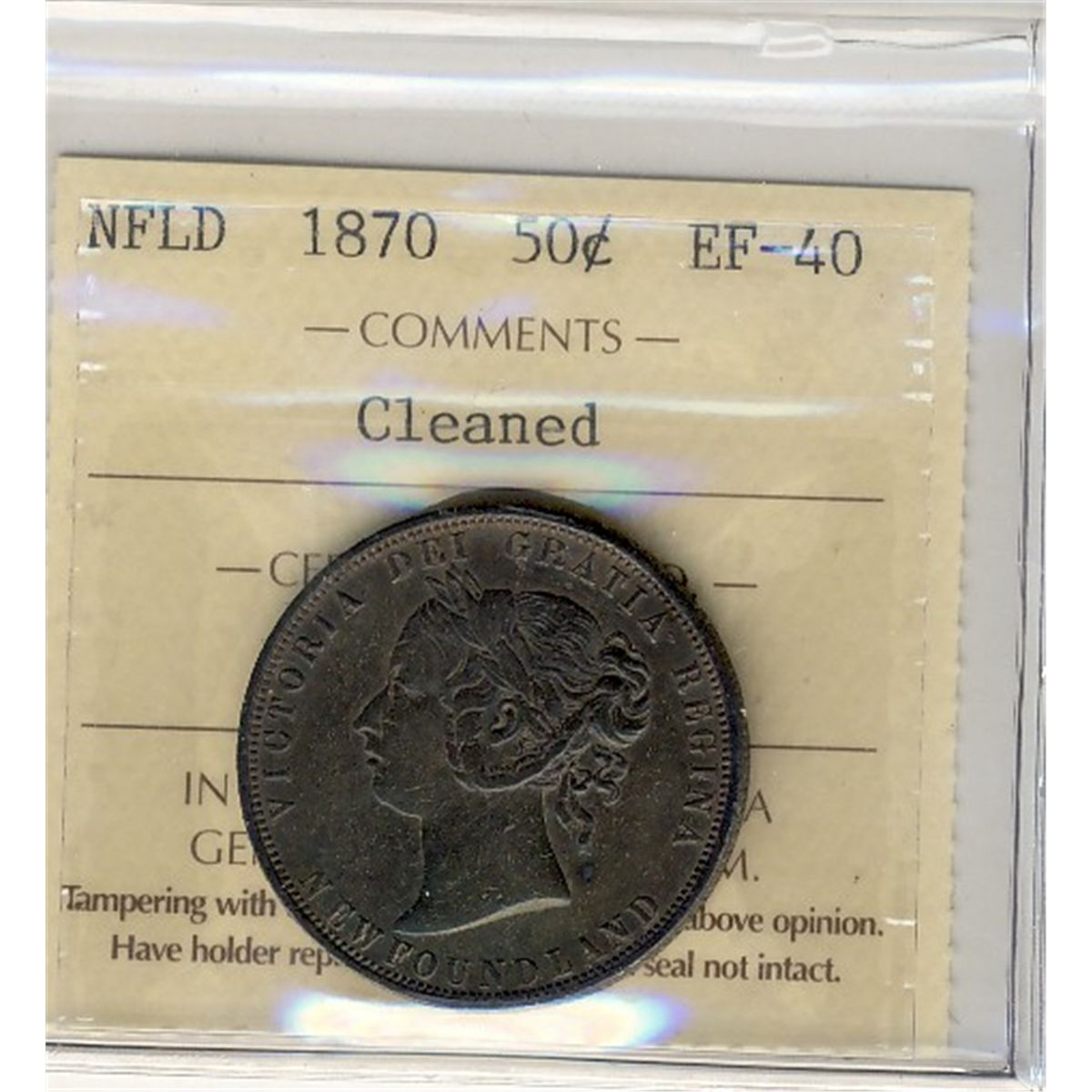 Nfld 1870 50¢ ICCS EF40. Designated as cleaned.