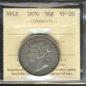 Nfld 1870 50¢ ICCS VF20.