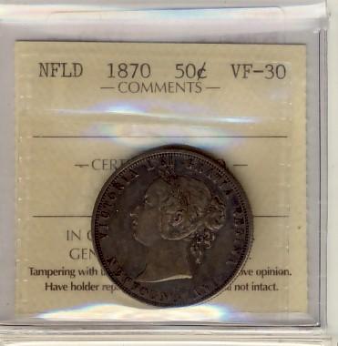 Nfld 1870 50¢ ICCS VF30.