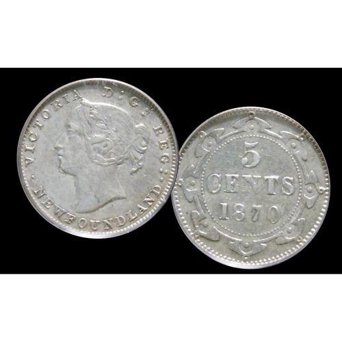 Nfld 1870 Obv.1 5¢ PCGS AU50, mostly brilliant. Scarce in this condition.